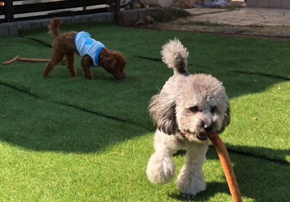 お天気の良い日は、お庭のドッグランで太陽を浴びて走り回っております!